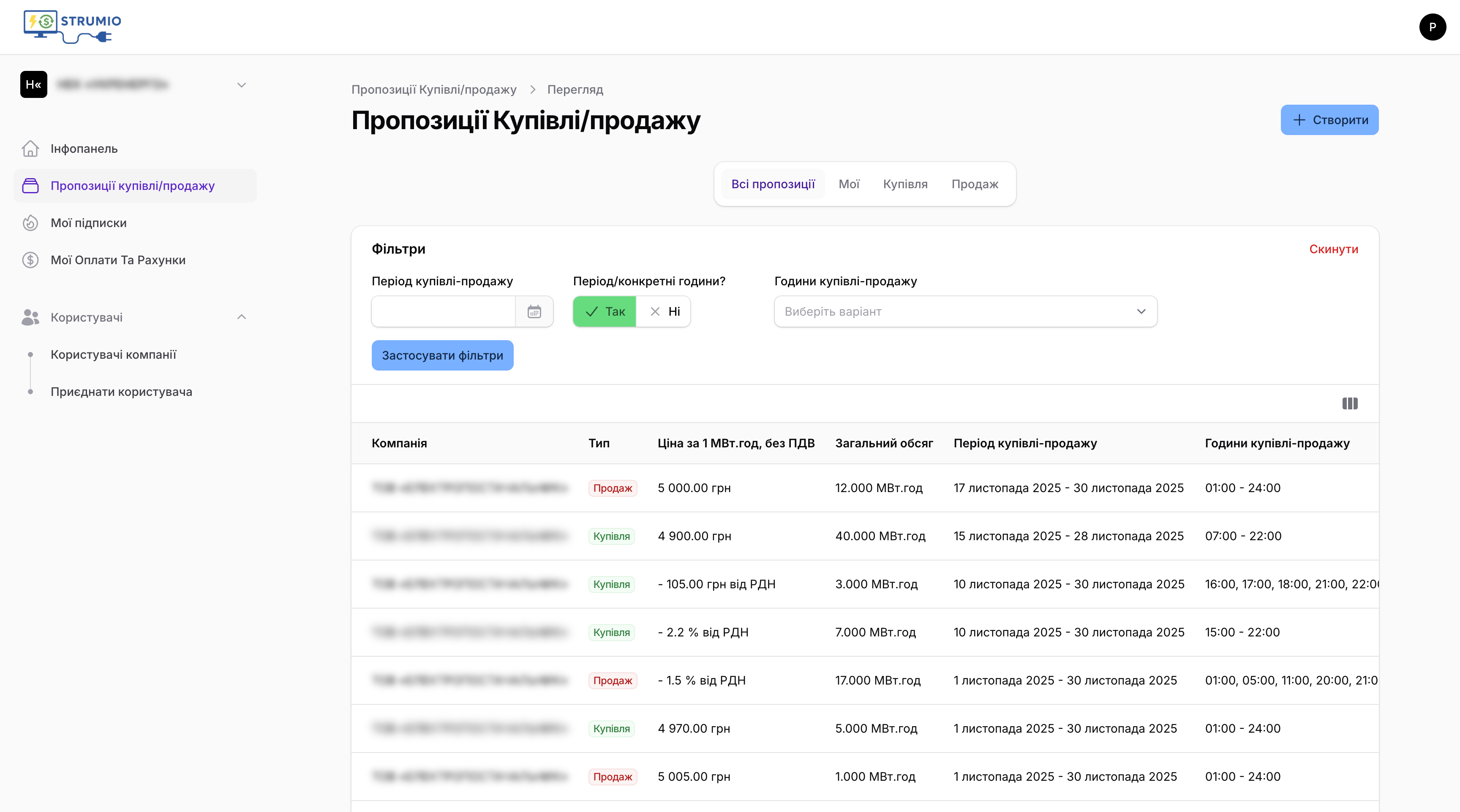 Перша в Україні платформа для обміну пропозиціями з купівлі-продажу електричної енергії.